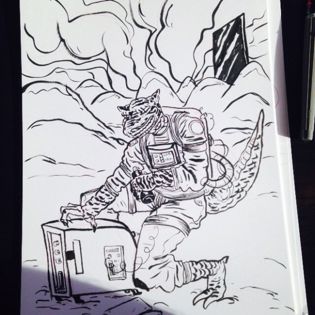 Daily Drawing 156 June 11, 2015 Space lizard drawing. Nope, not Bossk. Not at all. Share this: Click to share on X (Opens in new window) X Click to share on Facebook (Opens in new window) Facebook More Click to email a link to a friend (Opens in new window) Email Like Loading... Related