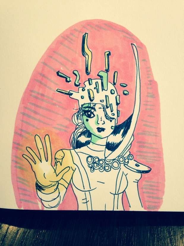 Daily Drawing 61 March 27, 2015Leave a comment Really dig how this lady Frankenstein cat lady came out.