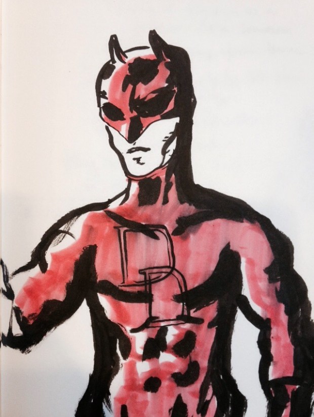 Today’s daily drawing was done during lunch, listening to the Awesome “Wait, What?” Podcast, my favorite comic book podcast. Graeme & Jeff are currently going through Fantastic Four comics, and Dr. Doom is the best! Give it a listen if you’re into that thing.